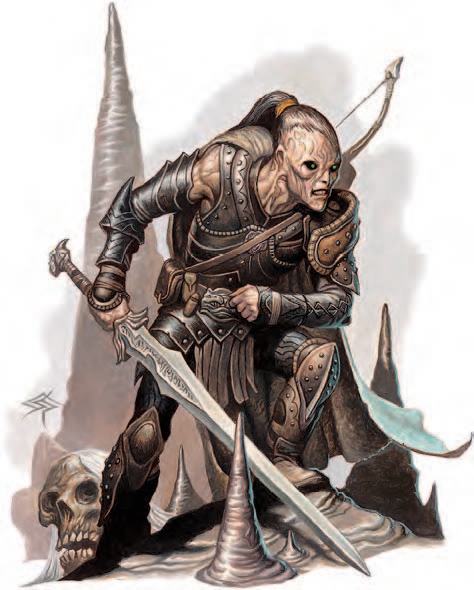 Also called "Leechspawn", Dhampyrs are the children of vampires. The pale skin common to all Graveborn is taut and veiny in the Dhampyr, and white as the full moon.