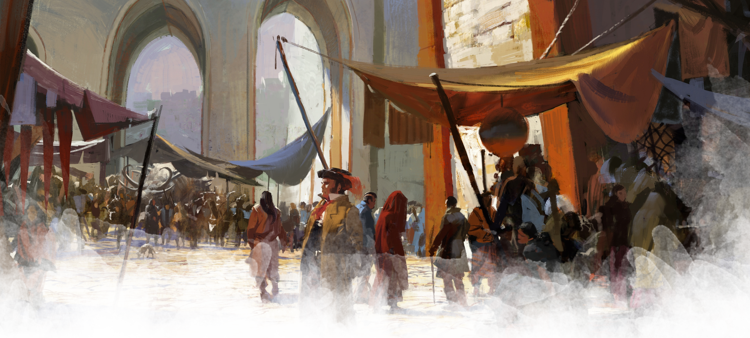 On, and on, the light stretches up into bustling cities where puppeteers play on street corners for children, next to merchants wheeling carts full of goods. A drunk stumbles out of an alleyway, face still red from wine and the previous night's brawl.