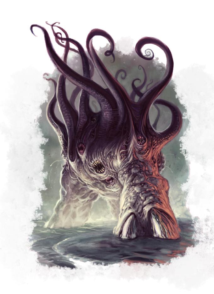 The Dark Young of Shub-Niggurath are horrifying, pitch-black monstrosities, which stand as tall as a tree (perhaps between twelve and twenty feet tall) on stumpy, hoofed legs. A mass of tentacles protrudes from their trunks where a head would normally be, and puckered maws cover their flanks. While they will eat voraciously, they do not need to in order to survive.