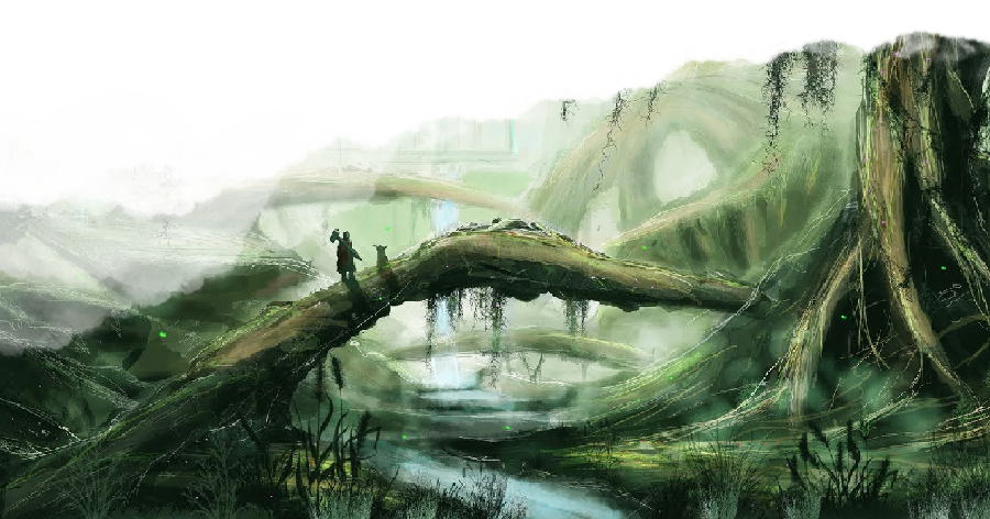 As a mossheart koradi, you are used to the damp soil and bogs of dense swamps. You are extremely well-versed in navigating the rivers of the region and have adapted to a life surrounded by dangerous plants and creatures.