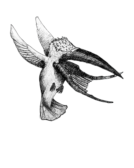 Swallow. The trochilidae attempts to swallow a medium or smaller creature it has grappled. The target must make a dexterity saving throw DC 13. On a failure, the target is swallowed, and the grapple ends. While swallowed, the target is blinded and restrained, it has total cover against attacks and other effects outside the trochilidae and it takes 2d4 acid damage at the start of each of the trochilidaes' turns. The trochilidae only can have one creature swallowed at a time. If the target is Medium sized, the Trochilidae's movement speed is halved until the target is digested or expelled.