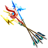 The Gerudo women are proud of powerful bodies and dress accordingly, wearing long, light flowing fabrics, often showing their midriffs and golden jewelry adorned with gemstones. This theme carries on to their weaponry, as the Gerudo often adorn their signature scimitars, spears and bows in the same manner.