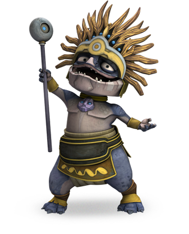 Skin Color Yellow, Green, Light Brown Hair Color None Eye Color Yellow, Orange, Brown Distinctions Large face with upturned nose, Lack of shoulders, Crippling anxiety