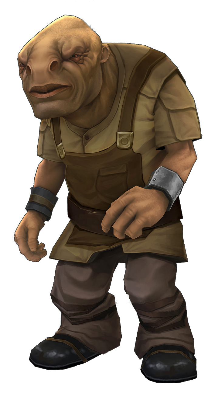Snivvians are known for their iconic wide-mouthed grins and miniature tusks. They have five-fingered hands and fully opposable thumbs. Snivvians do not grow fur, but instead grow short, coarse hair out of the top of their heads. Because of their lack of fur, Sniivians are forced to retreat into underground caves during the long, harsh winters on Cadomai Prime. Their sharp eyesight and hyper-sensitive olfactory organs make Snivvians fantastic trackers, which is necessary in order to hunt in the frigid tundras of their homeworld.