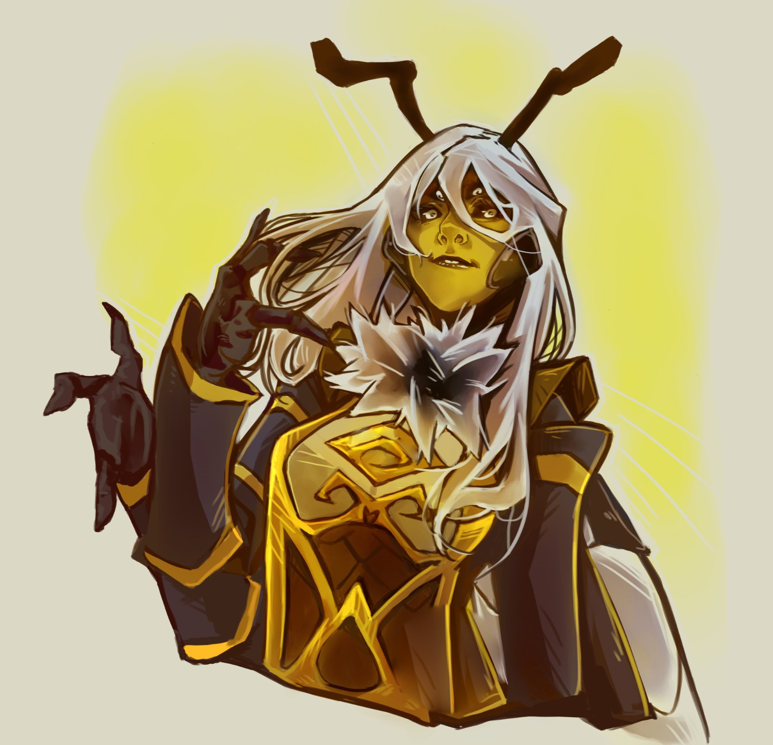 Drones are treated very differently. Viewed as weaker and more like a valuable item, they are usually kept within the Queens home, free to learn and study but heavily guarded as well. When they reach adult hood they are usually traded in an arranged marriage to another hive, given to the Queen in exchange for a fortune. In their new hive they are seen more like a royal treasure than an individual. Their more social nature and weaker physique fits well to a life without hard work, but many still explore to satisfy their curiosity.