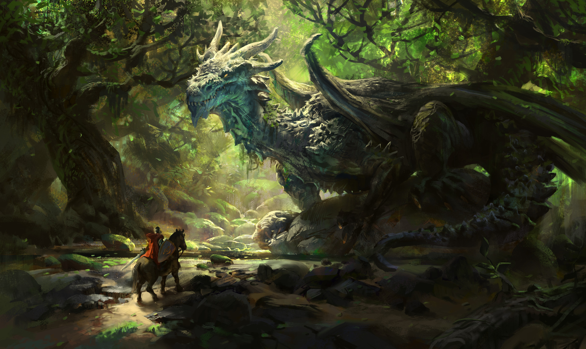 Unknown Artist "Warrior Facing Dragon"