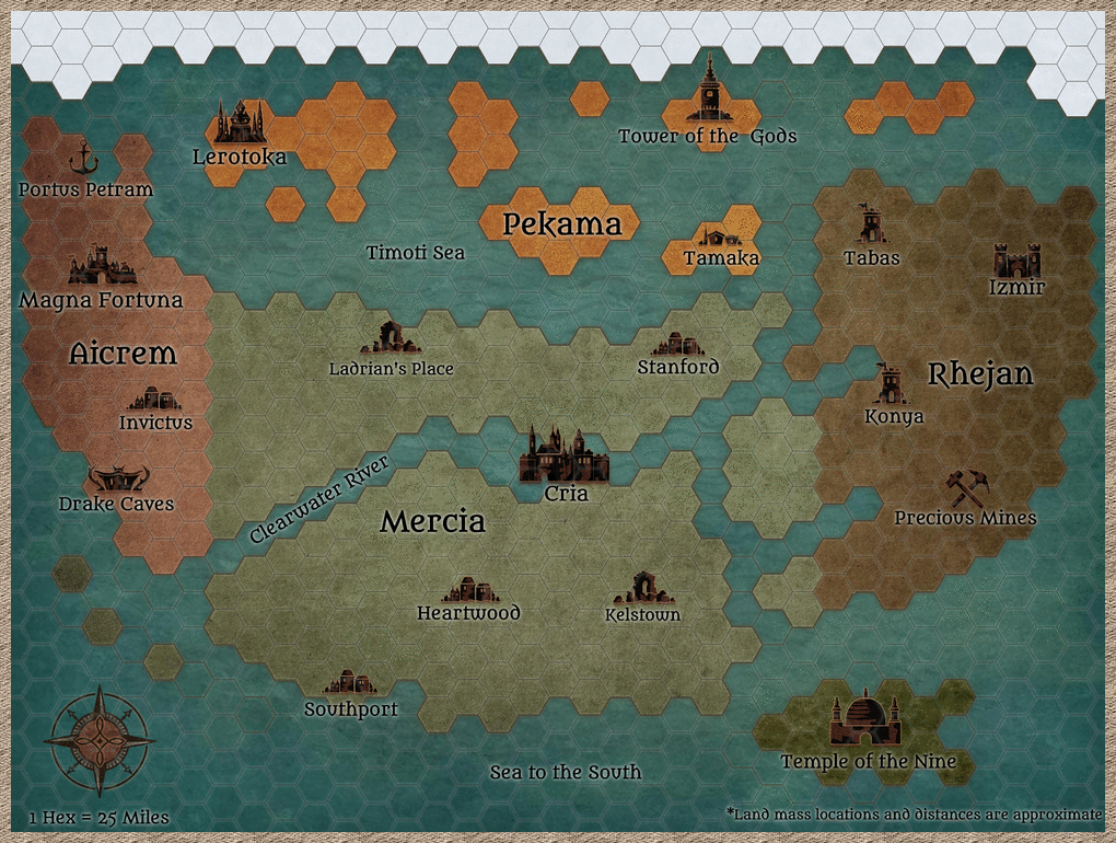 Dukain is a world full of natural beauty and magical wonders. Although the land has seen many people and nations rise and fall, we have all but forgotten Dukain’s ancient history. For the past 400 years, the Four Powers have coexisted: Mercia, Aicrem, Pekama, and Rhejan. The largest power in Dukain is the great state of Mercia. My name is Callicrates Pulcher, Historian and Seer to The Council of Mercia. This guide has been written in an effort to capture this moment in our history. For years we've had the closest thing to peace Mercia has seen in generations, but the winds are shifting and I foresee darkness on the horizon. My only hope is that should disaster strike, this guide will survive for a future generation.