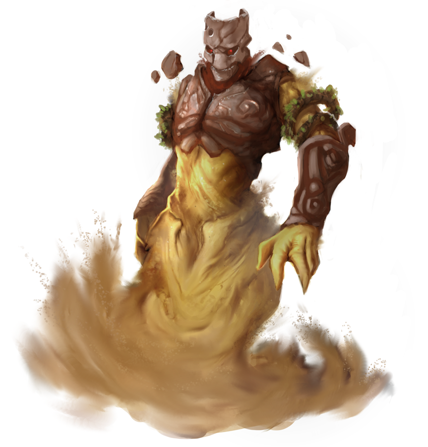 The terrible flaywind is feared throughout the planes. It propels sand with such velocity that it reduces a living creature to bare bones within hours, and exposed bone to fine powder in a matter of days. A flaywind might exist on its own or as the sinister core of a larger sandstorm. The storm typically lasts 1d4×10 hours, but some flaywinds of legend have lasted for many days.