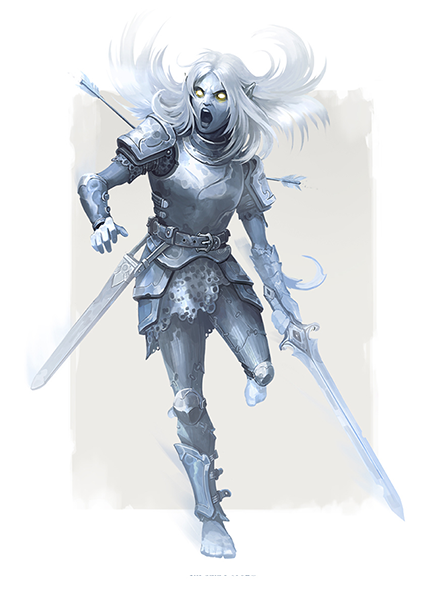 The spirit of the ghostveil exitss between two worlds, most commonly the world of the living and the world of the late. It can seamlessly move through the fabric of each plane, pulling its host into and out of the plane with it. These avatars possess otherworldy abilities that let them alter reality with illusory visions and travel through neighboring planes.
