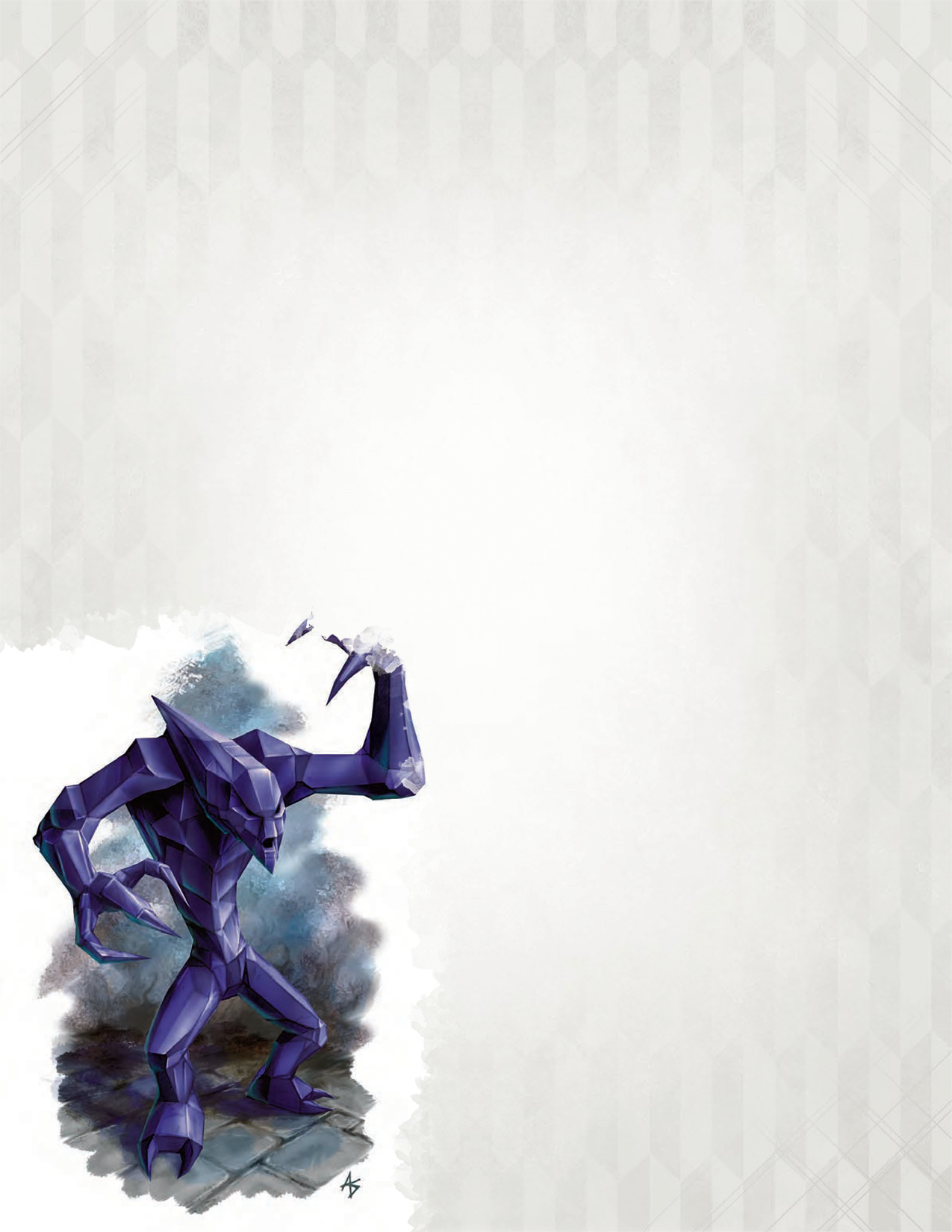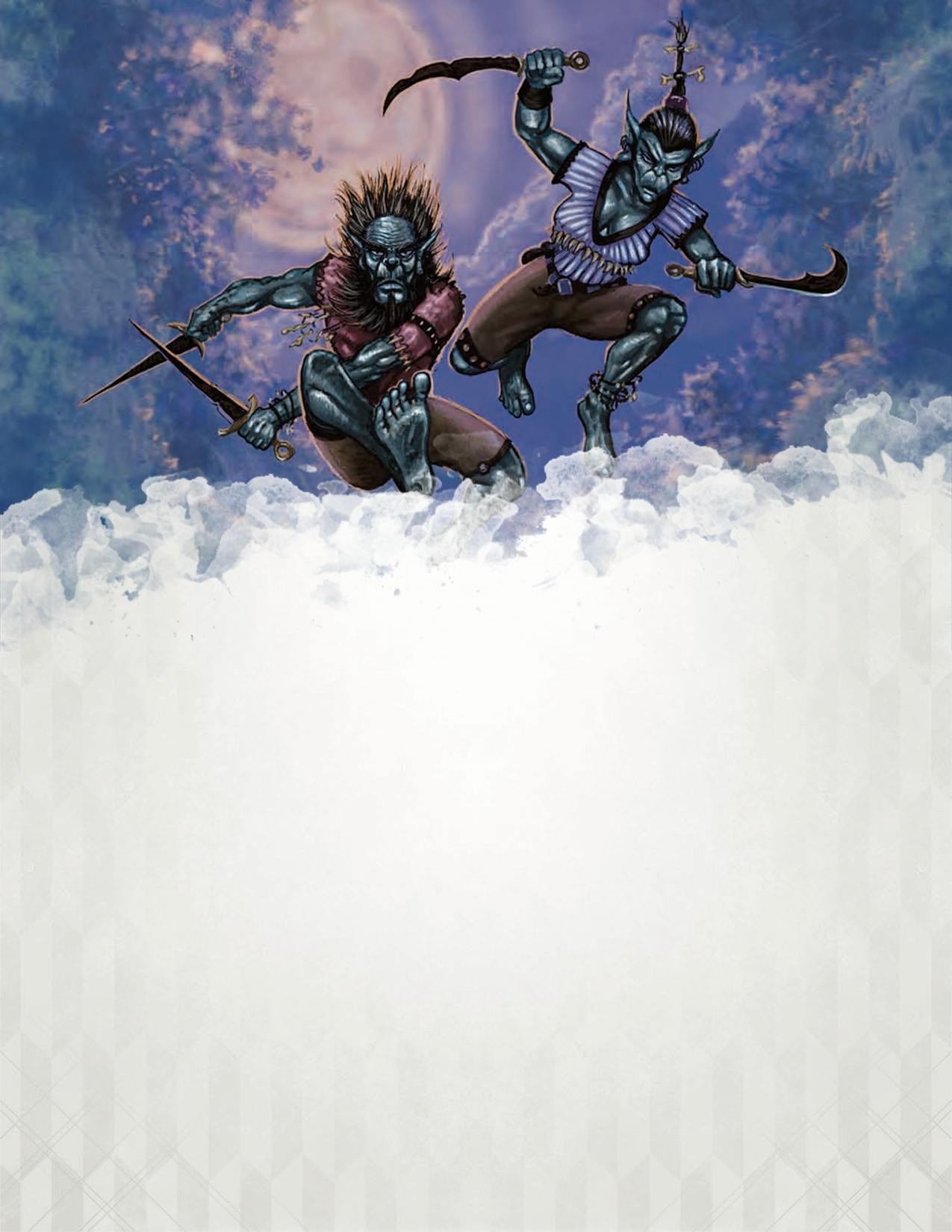 The hierarchical skarn society features clearly defined social classes. As a race, skarns prefer cities to rural communities. They prize architecture as an art form, and their cities display a wide range of different yet harmonizing styles of construction and engineering. Like their sister race, the rilkans, the skarns are descendants of the mysterious mishtai, a long-vanished progenitor race. Despite their shared heritage, the skarns look down on the rilkans for their supposed contribution to the mishtai’s failure to create a perfect race. The skarns treat most other races as inferior, though this viewpoint rarely carries any malice. Skarns speak Common. When they deign to learn other languages, they prefer the tongues of those few races or creatures that they consider close to equals.