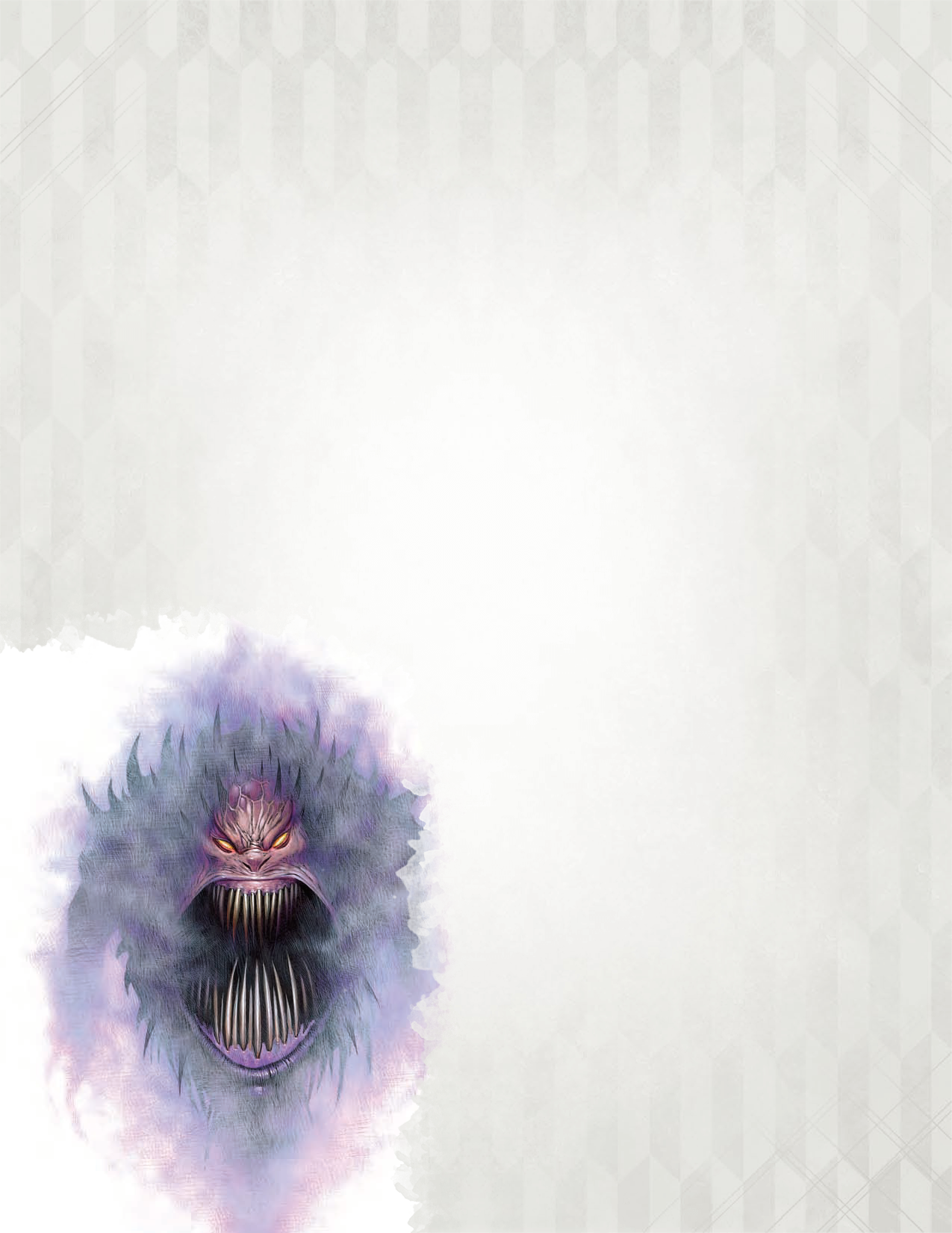 Darkness emanates from an indistinct, vaguely humanoid shape. Its eyes glow like coals, and its oversized mouth is filled with massive teeth. A cold, dark mist coalesces around the creature, swirling as if some force were drawing it inside the body.