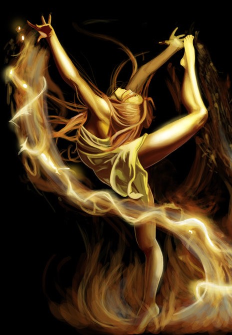 - When you take fire damage, you can use your reaction to take control of the flames, drawing them into your dance and reducing the damage to 0. When you do so, you can also expend a use of your bardic inspiration to empower your weapon attacks as if you had cast a spell of 1st level or higher that dealt fire damage. If you had already empowered your weapons with a spell, the bonus damage does not stack.