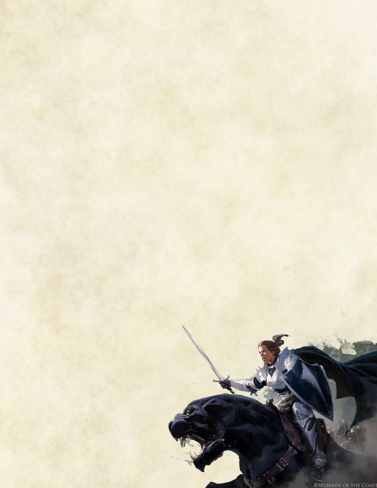 Paladins who take the Oath of the Frontier are the sworn protectors of the furthest reaches of civilization. Sometimes known as vanguards, outriders, and vagabond knights these paladins leave behind the comforts of civilized society to serve as the front line defenders of justice, traversing vast distances across harsh terrain in search of people in need.
