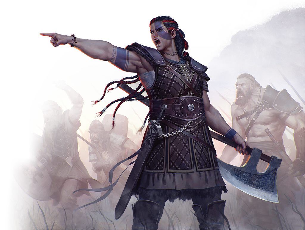 On the battlefield, commanders merge martial training with an overbearing presence. They rarely ever fight alone, instead preferring to fight alongside their most trusted companions. When they are not engaged in combat, a commander still uses their reputation and charisma to influence others, branding them with a reputation as powerful leaders, dreadful tyrants, or trustworthy allies.