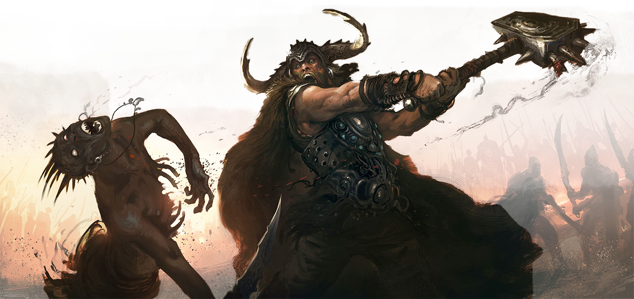 Bards tell tales of infamous chieftains leading campaigns of terror, conquerors whose name alone causes fear in mortal creatures. Wherever a dread lord goes, an army of blood thirsty warriors is sure to follow. Dread Lords trample anyone that dares stand in their path, using savagery and ruthlessness as a means to an end.