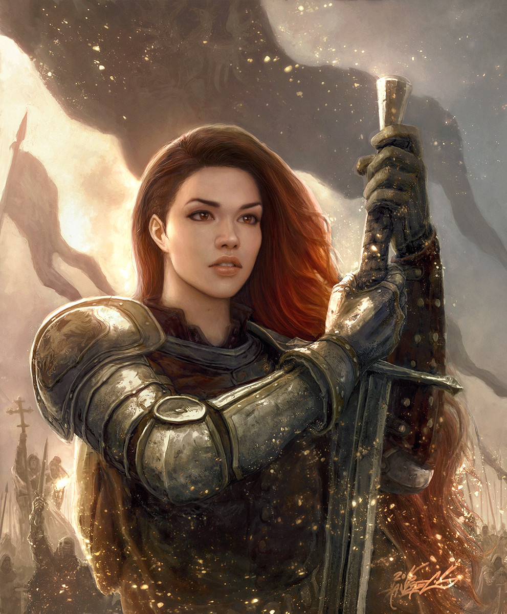 Seven devils rise from the depths of hell, walking through an infernal gate to the mortal plane. At their front marches an armored tiefling. The embers of hatred and vengeance glow in her eyes, plainly visible through her black visor. She wields a greatsword of iron, red hot from the lava it was forged in, and upon her head a crown of black flames as the group marches away from Avernus.
