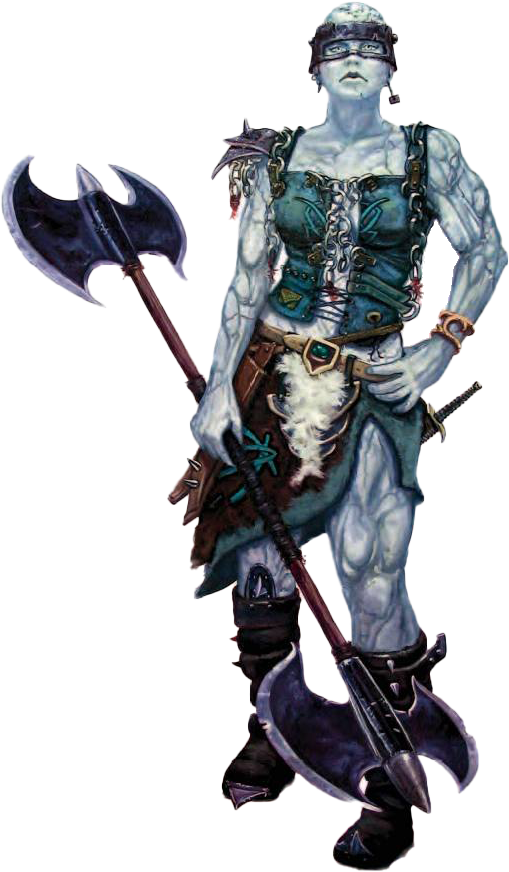 Imposing creatures of muscles and concentrated energy, Stoneborn are large, usually standing between 7 and 8 feet tall, and weighing between 400 and 500 pounds of dense, solid muscle. Their skin is usually shades of gray, often covered in swirling patterns, reflecting the mountains in which they make their home.