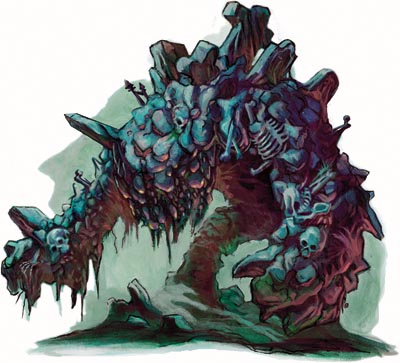 "A repulsive, extremely tall, humanlike creature with long, rotting wings and peeling flesh, this monstrosity continually sheds rivulets of filth and decay, creating a pool of rot in which it stands."