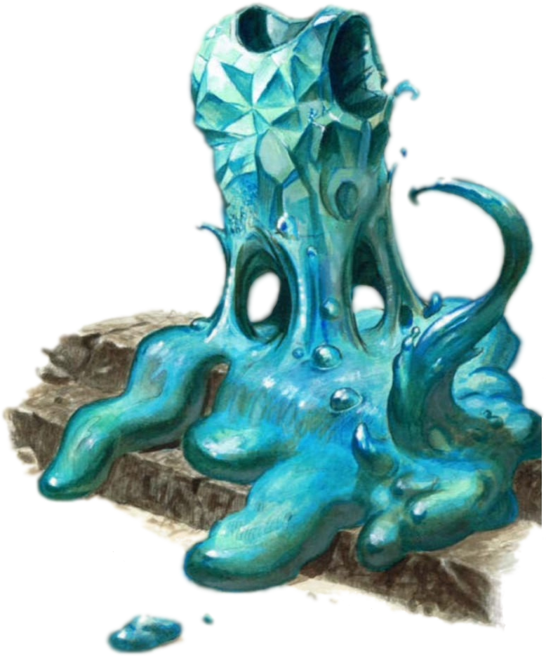 Sapphire oozes that find their way to the Material Plane usually do so by accident. In such cases, the ooze eagerly seeks out novice adventurers or aspiring heroes to share adventures with, using their abilities to protect their allies and inspire them to greatness. They are often quite surprised and confused when they encounter other oozes, which sapphire oozes never expect to be so mindless and such boring conversationalists.