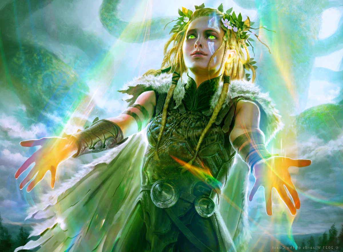 below. The great dragon had all but decimated the battalion of guards that had come to defend their home. A single man stood and thrust his spear toward the terrifying wyrm, but before the dragon could deflect the blow, the elf unleashed a powerful Spirit from within one of her Totems. In an instant, the Spirit had enveloped the dragon, temporarily sapping its strength. In its feeble state, the spear pierced the dragon's heart, ending its campaign of terror. The elf made her way back to her solitary cave, content knowing that the town she guarded in secret would be safe for another season.