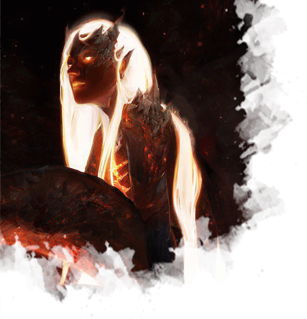 Lava genasi are incredibly temperamental - their hair, akin to charred wisps of smoke, glow white hot when experiencing intense emotions like anger or sorrow. The crevices in their frame emit an orange glow, as if a fire was contained within them, and during these outbursts would be scorching to the touch. The efreeti leaders of genasi clans branded them as a mistake, an affront to the purity of the fire genasi lineage. The lava genasi were banished from their villages to fend for themselves.