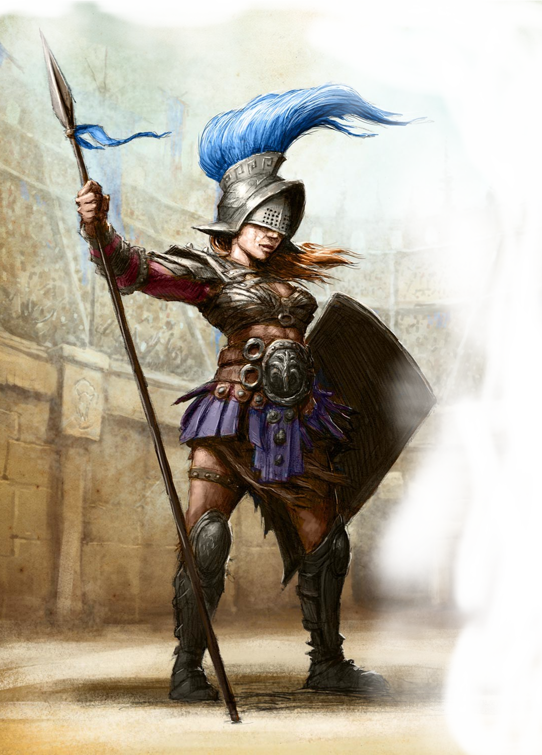 Versatile fighters and everymen, Thraex tend to be painted as the heroes of arena competitions. Their varied skills and adaptability make them easy to root for, and their displays of inventive fighting in the arena make them crowd favorites.