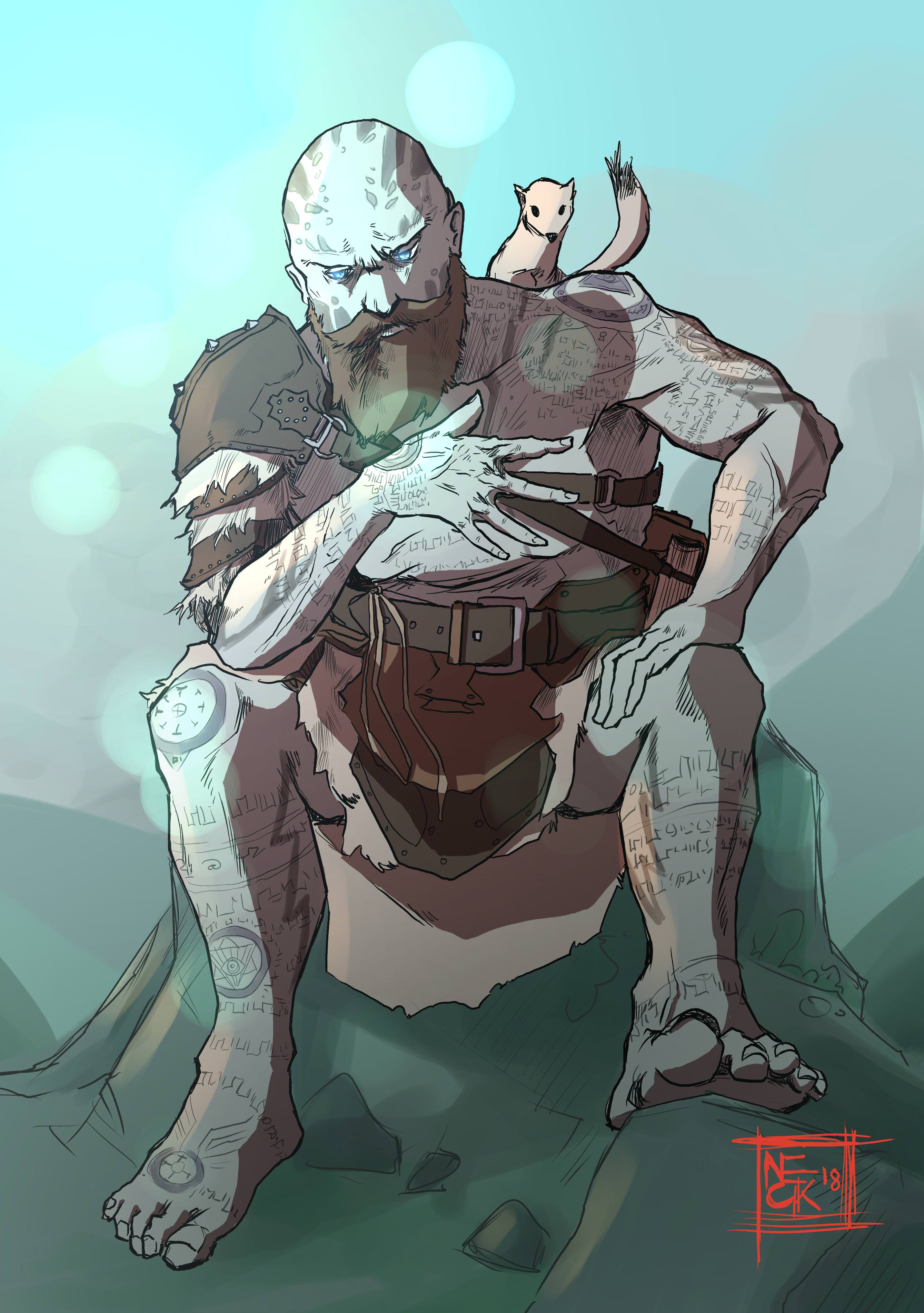 “Once, the gods, in the form of men, walked upon the earth and blessed it. They climbed mountains in passing, and waded kraken filled seas in their baths. Once.. These legends circle and grow around mountain fires, on snow-streaked ridges and barren arctic wastelands, fires that warm the chilled skin of a people who are but a shell of their ancestors, the giants, who now weep and shiver in their graves and halls. Little more than a reminder to the rest of the world, these people are all that is left of the great striders of the world.”