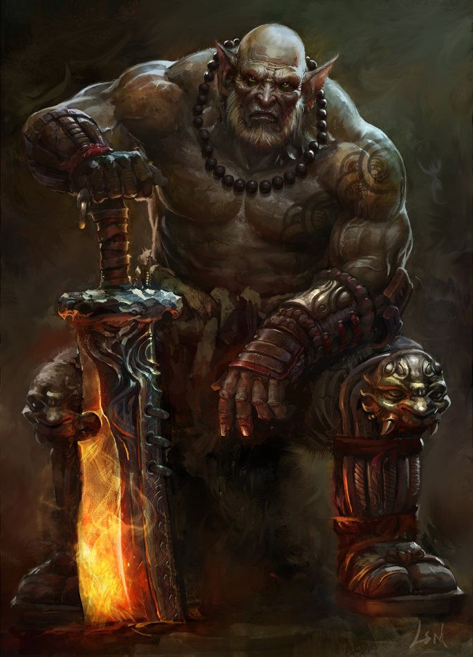 A half-ogre with orc blood is a powerful addition to any orc tribe, and they often threaten to attain leadership of it.