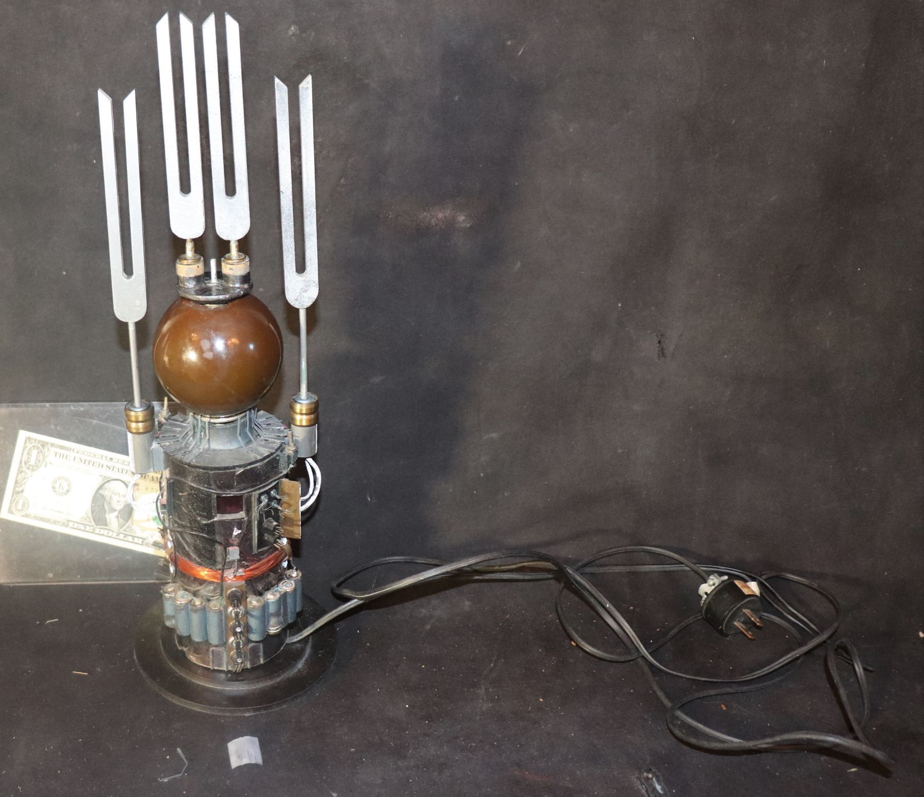 A gnome works in a laboratory filled with strange contraptions and mutilated bodies, as well as strange, unholy combinations of flesh and metal.