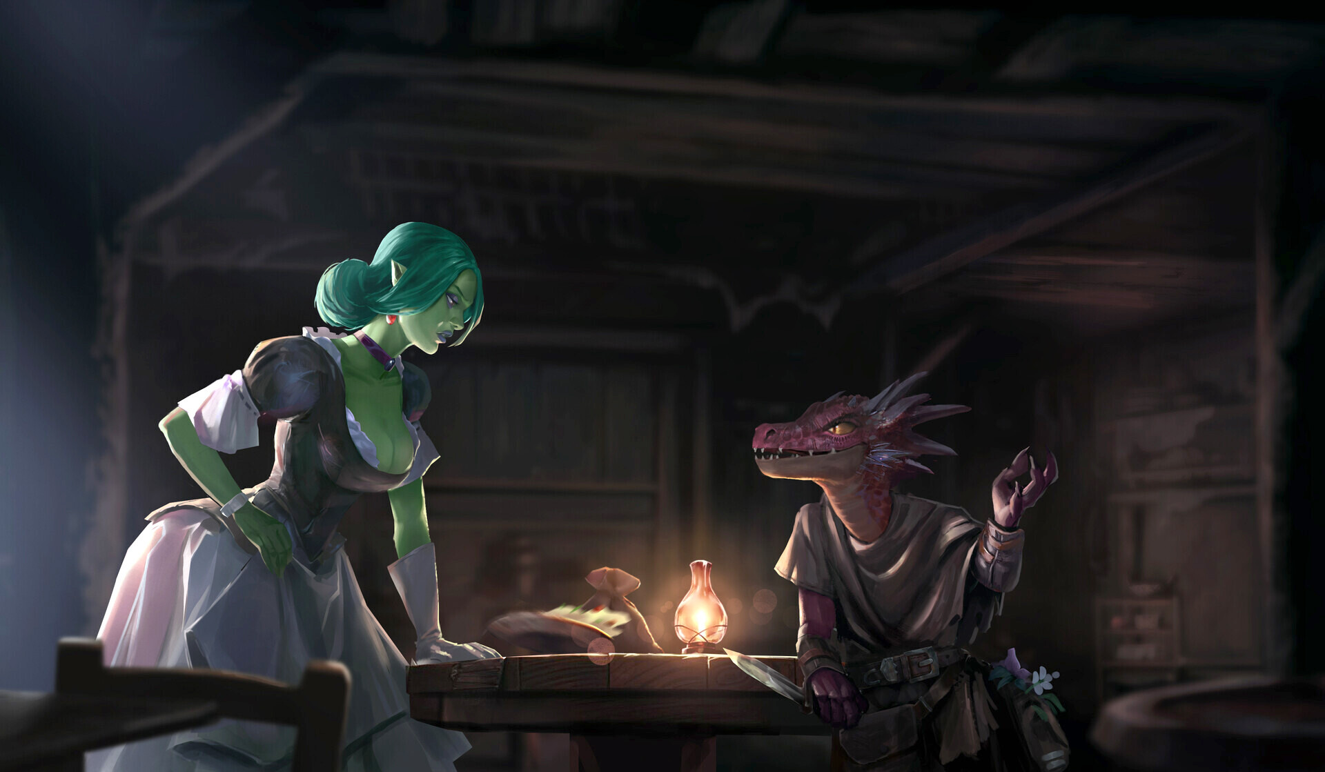Kobolds descend from the blood of dragons, but though each kobold is weak and physically frail, they take great pride in this tenuous bond that links them to the mightiest of creatures. It is common for kobold tribes to flock to dragons and do their bidding, merely for the chance to be close to what they view as a god in the flesh. Many a dragon has eagerly exploited such kobold tribes for their own gain. Some kobolds inherit a smidgen of dragon magic, often becoming highly-respected kobold scale sorcerers who lead their tribe in their religious practices.