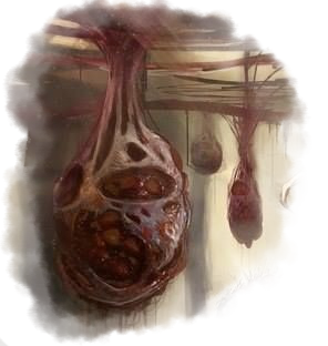 A tiny leech-like symbiote creaturse, Eternals inhabit and take control over bodies of other races. They possess scythe-like claws with which they move and are capable of burrowing deep into the flesh of a creatures body and attach themselves to the spinal cord in the neck region. Their skin appears in a variety of different colors, but all of them possess a prismatic shimmer when light shines upon them. Elder Eternals develop the capabilities of emitting a light glow from their eyes and thick, vein-like bulges running across the sides of their head. They are hermaphrodites, laying a handful of small oozing pods from which new Eternals hatch.