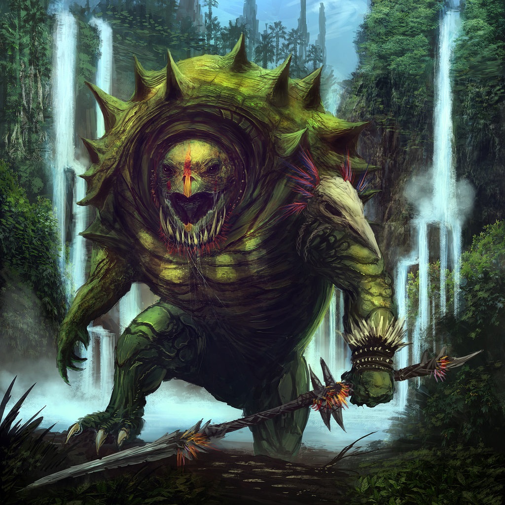 War-Turtles are militant cousins of the tortles. Although clearly of the same stock, most War Turtles have quite different lifestyles and personalities from their more mellow kin. They even spell the name of their species differently so as to avoid association with whom they consider to be somewhat embarrassing relatives. War-Turtles are drawn to conflict and entire tribes have historically offered themselves as mercenaries to keep their skills sharp.