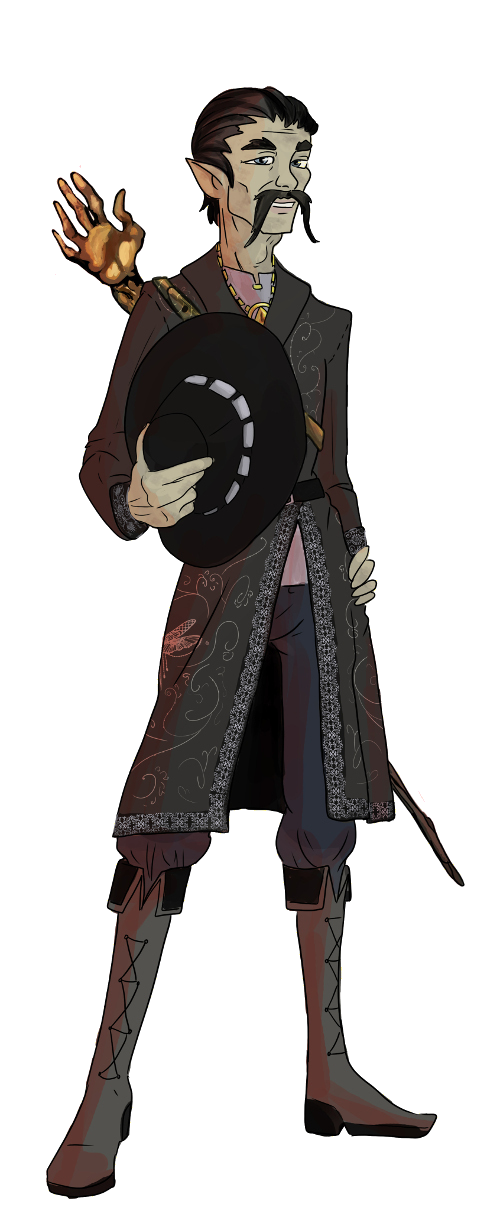 A waste of time, really. He lifted the floppy, wide-brimmed hat off his head and ran his fingers through his perpetually slick black hair. Not wanting to let it go to waste, he rubbed the residual grease into the tips of his long mustachio and twisted them back into points. He needed more money; more money for hair wax, for cologne, for warm beds and nice meals. He wanted a place to call his own, instead of whatever hole in the wall his crew could find. He was tired of listening to Vith’s slithering snores every night as the small kobold tossed and turned, and he was tired of waking up in the middle of the night to see Lyrin’s half-closed eyes staring at him in that weird elvish trance thing he liked to do.