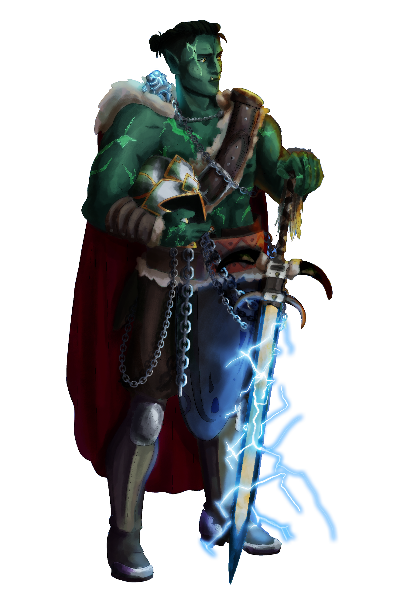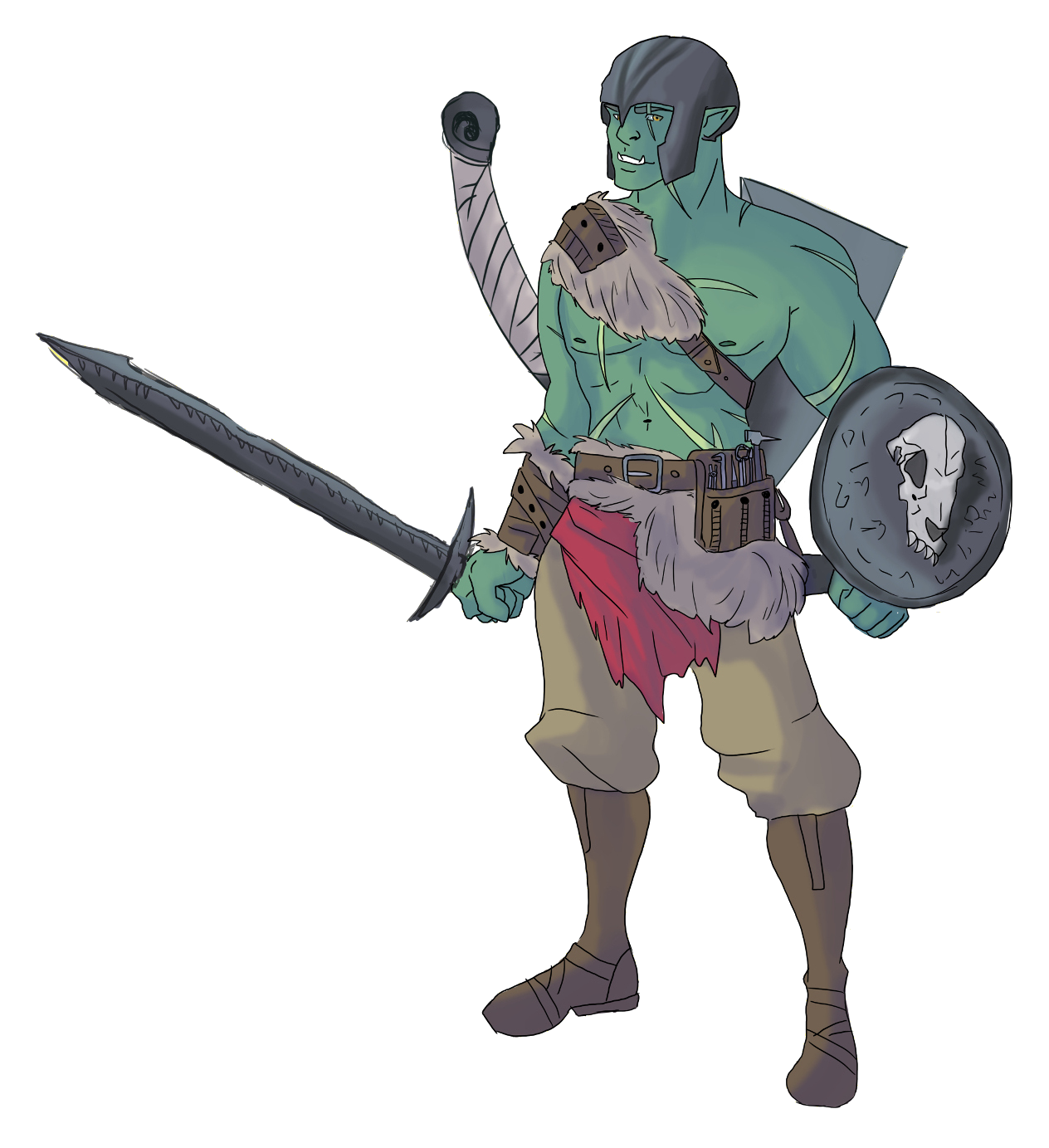 A proud member of the orc tribe residing in Urk, Notrick grew up as a blacksmith, helping his father every day at the forge to arm and aid his village. His father, Kolle, single-handedly took care of him over the years, teaching him the ways of his people and fostering his creativity. His mother was an unknown figure, absent during his early years. Notrick was always intrigued with the unique properties of different materials after discovering that steel is an alloy of iron and ash, and he decided his main objective was to find the most interesting and unique materials in the world and one day share his experiences with his father.