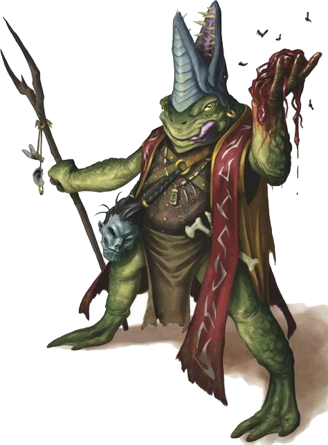 “You slide through brackish waters in a small skiff, the smell of rotting vegetation thick in the humid air around you. A chorus of croaking frogs echoes all around you. Suddenly, the water close to you starts to bubble! Slimy, frog-like humanoids with stone-tipped spears emerge, croaking in anger!”