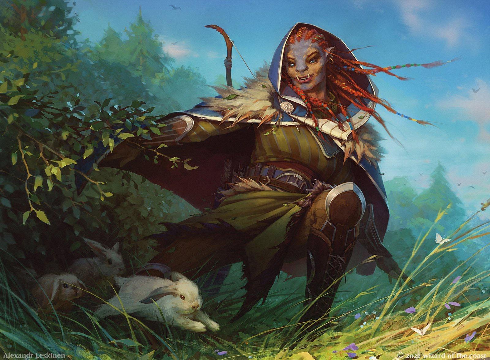 her companion in the brush. At her signal, a giant dog that seemed to be more fur than anything else leaped out from hiding and stood defiantly in front of the owlbear. Distracted by her partner, the owlbear was caught completely unawares by the diminutive ranger. Once their foe was unconscious, the halfling and her dog released the owlbear miles away where it could live without menacing the town they protected.