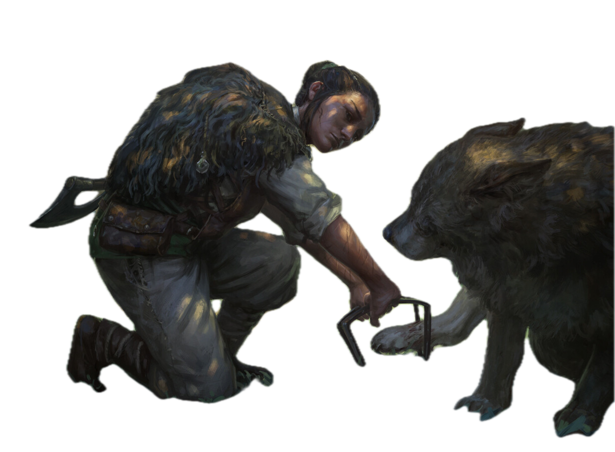 Rangers spend their lives between two worlds. On one hand, they stand as guardians of civilization, protecting those who dwell on the edges of society. On the other, rangers are expert survivalists, deeply acquainted with the flora and fauna of the natural world. Rangers protect the balance between society and the wilderness. When a wild creature wanders from its natural habitat, Rangers will track it down before it can harm innocent farmers and travelers. When people encroach upon the wilderness, Rangers will push back against industry and expansion that doesn't respect the natural balance.