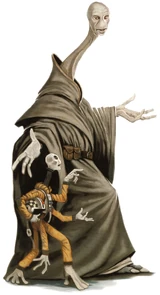 Quermians were a humanoid sentient species that had pasty white skin and red eyes, which were located in a bulbous head with a small mouth that was located on top of a craning neck. They had two brains, one located in their head and the other inside their chest cavity. Possessing no spines, Quermians were notable for their towering stature, with an average member of the species standing over three feet taller than most other humanoids. Quermians had two sets of thin arms with hands that terminated in several slender digits, and a pair of legs that ended in large toed feet. Lacking noses, Quermians instead smelled using olfactory glands in their hands.