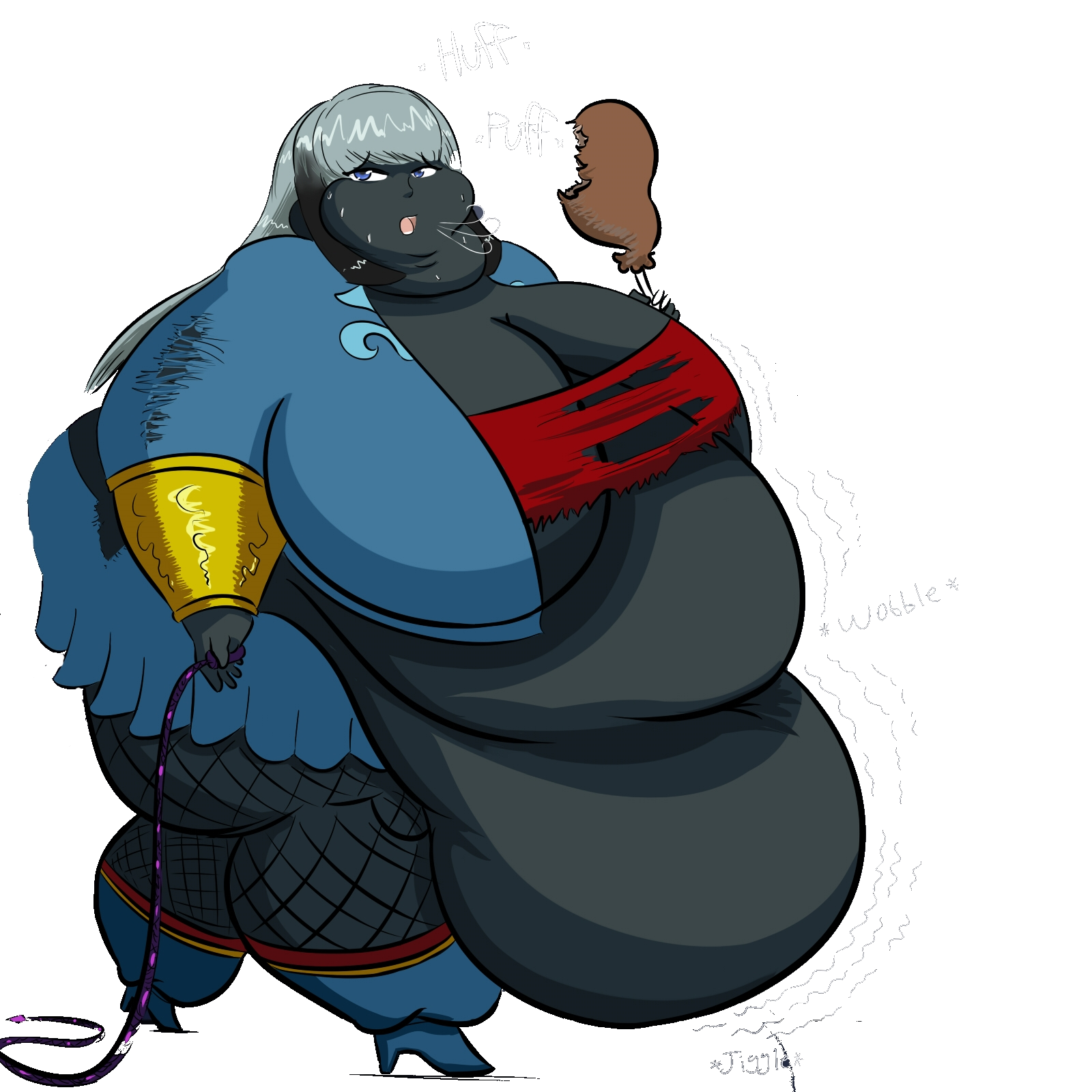 Often times, someone increasing drastically in weight will suffer some problems maintaining their wardrobe. This can be problematic when someone suddenly and drastically increases in weight in the middle of a fight and finds that their armor suddenly no longer functions as such. While magical armor grows or shrinks to fit the wearer no matter the size, Non-magical armor is sized to the individual it is intended for at time of purchase typically, and has a limited elasticity.