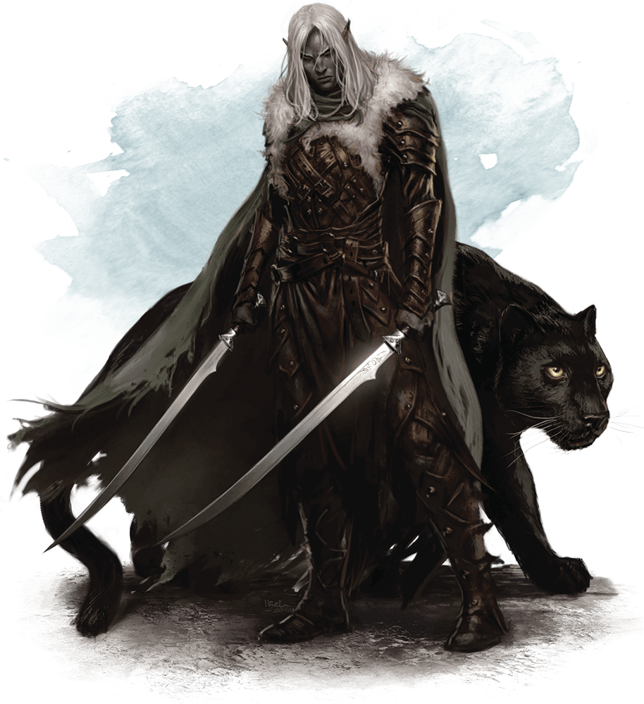 Holding his hand high, a half-elf whistles to the hawk that circles high above him, calling the bird back to his side. Whispering instructions in Elvish, he points to the owlbear he’s been tracking and sends the hawk to distract the creature while he readies his bow.
