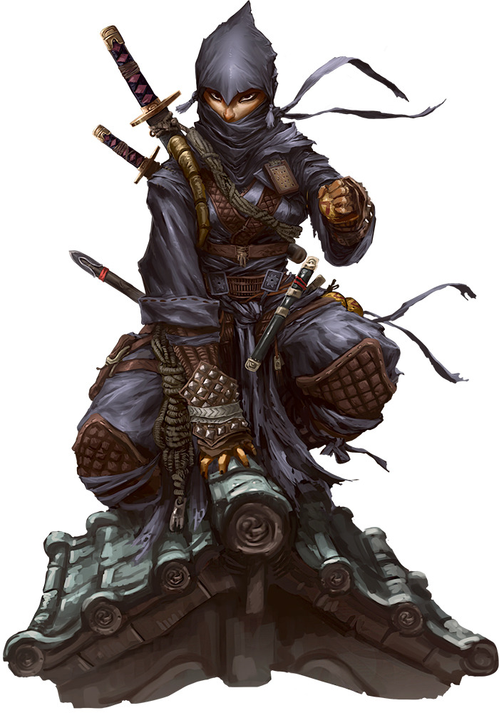 While many monks are happy to remain in their cloister, ninjas are a different breed, since nearly all clans have a desire to influence the outside world, whether for good or for evil. A ninja's training is designed to make her ready to face any obstacle. To be a ninja is to be always prepared for an adventure.