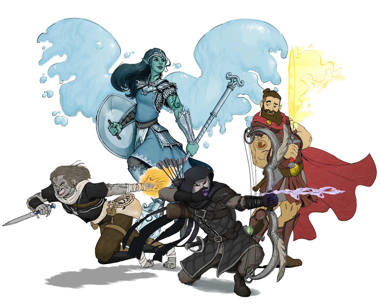 Our story begins in the chill northern town of Brooksburg, in the warm interior of the Frosty Goat tavern. Three figures are inside enjoying their dinner: Galaxea, a water genasi cleric, Thuzzal, a changling fighter, and Porkchop, a shifter rogue.