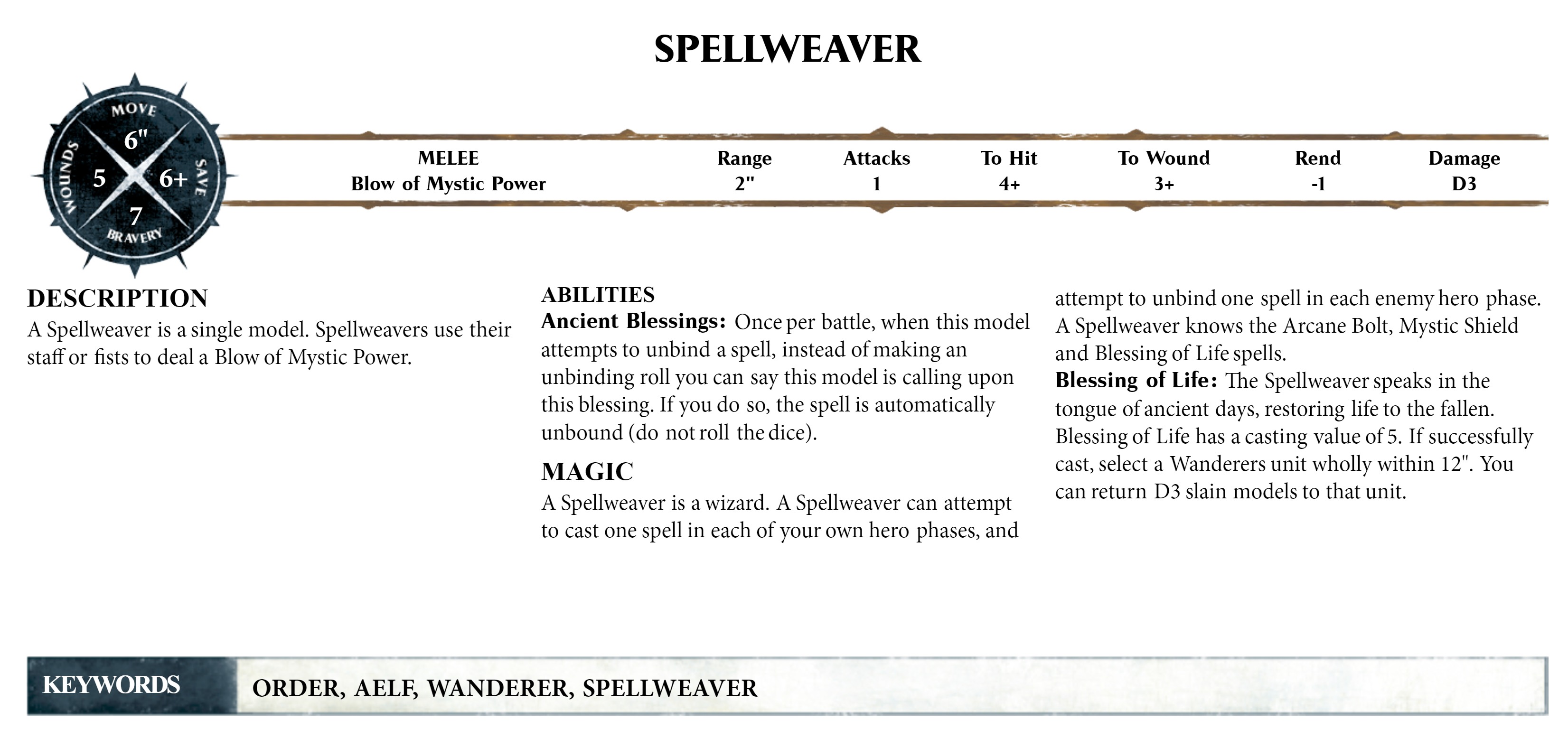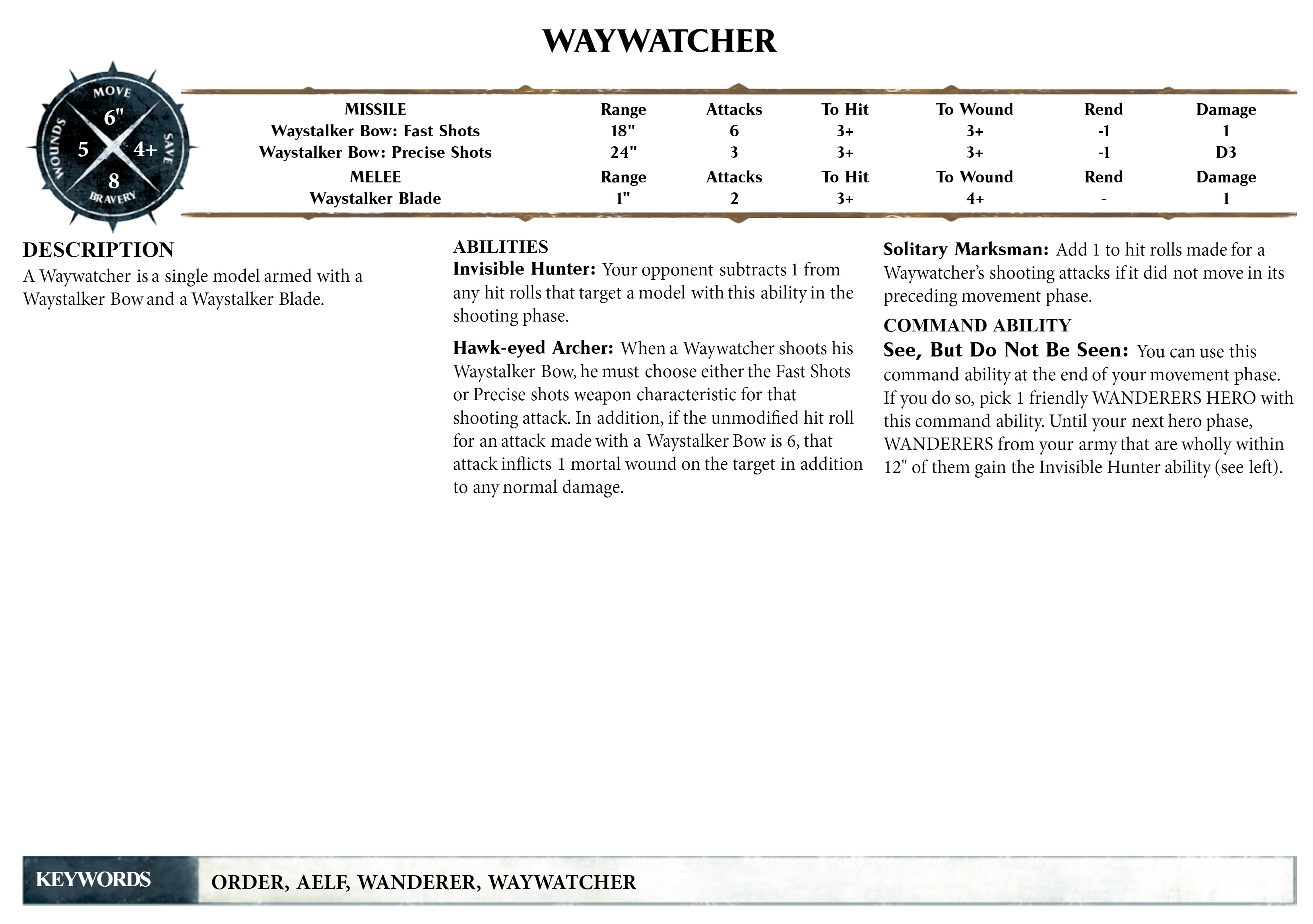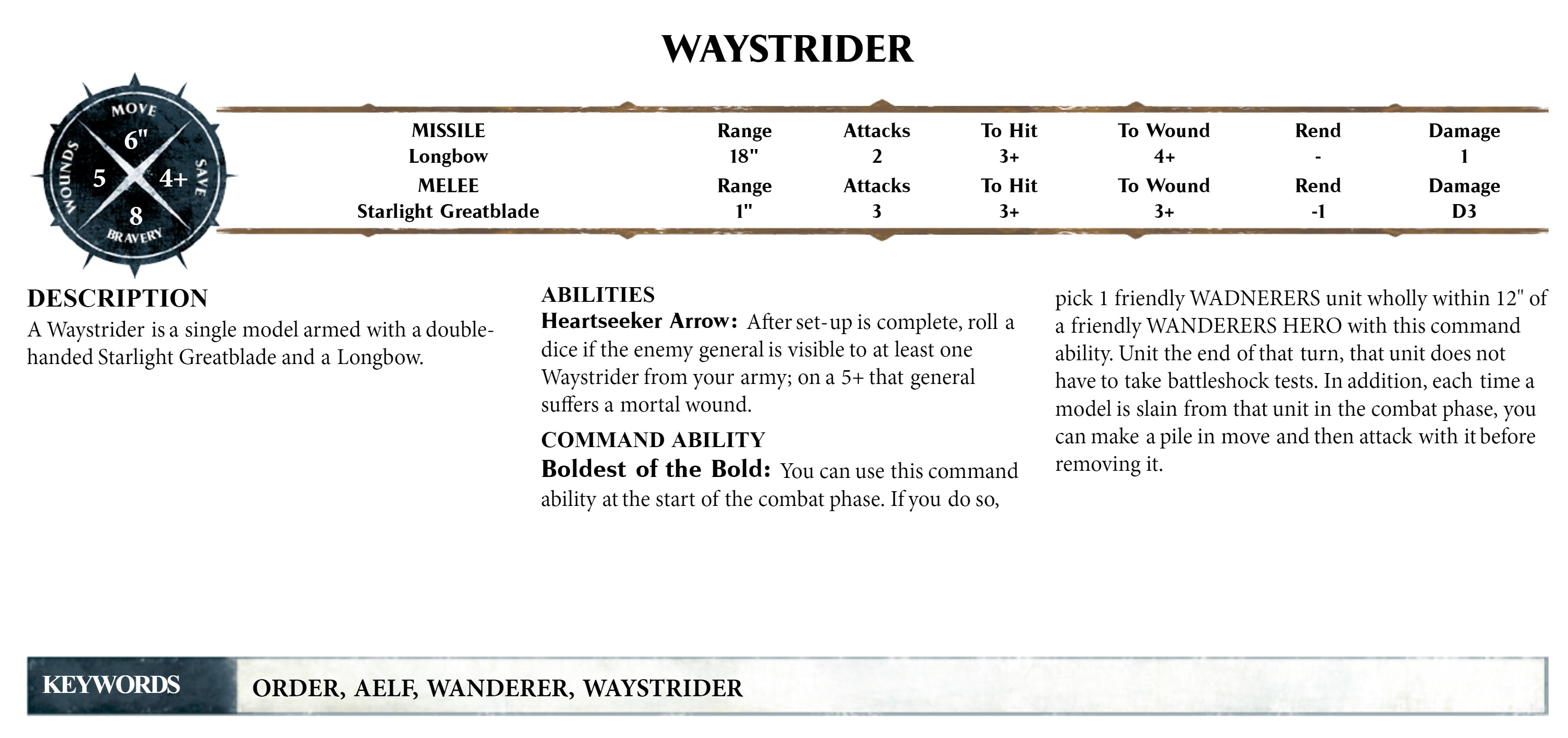 | Wayfinder | 1 | 1 | 100 | Leader | Use Waystrider or Waywatcher warscroll |