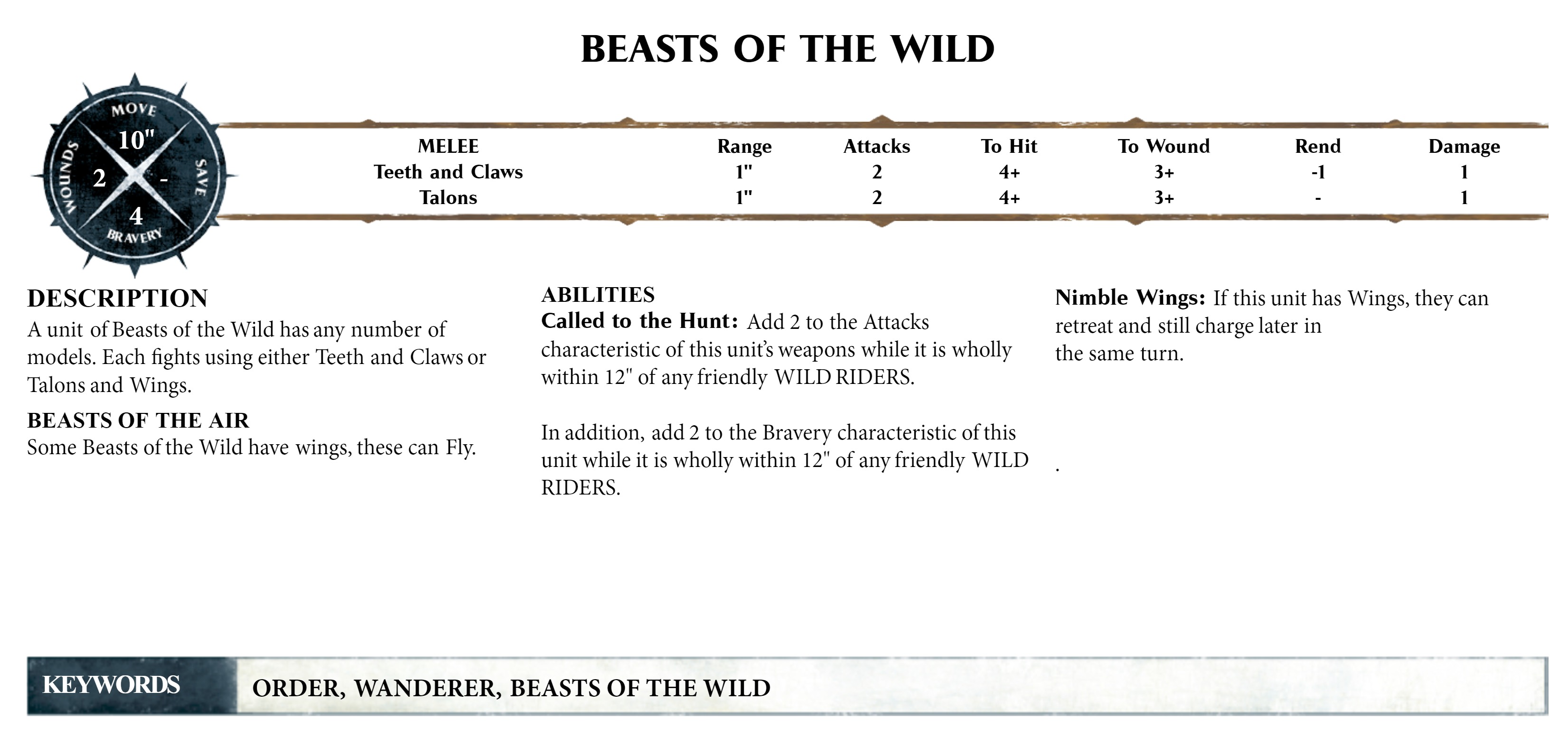 | Great Eagles | 1 | 3 | 60 | Use Beasts of the Wild warscroll | |