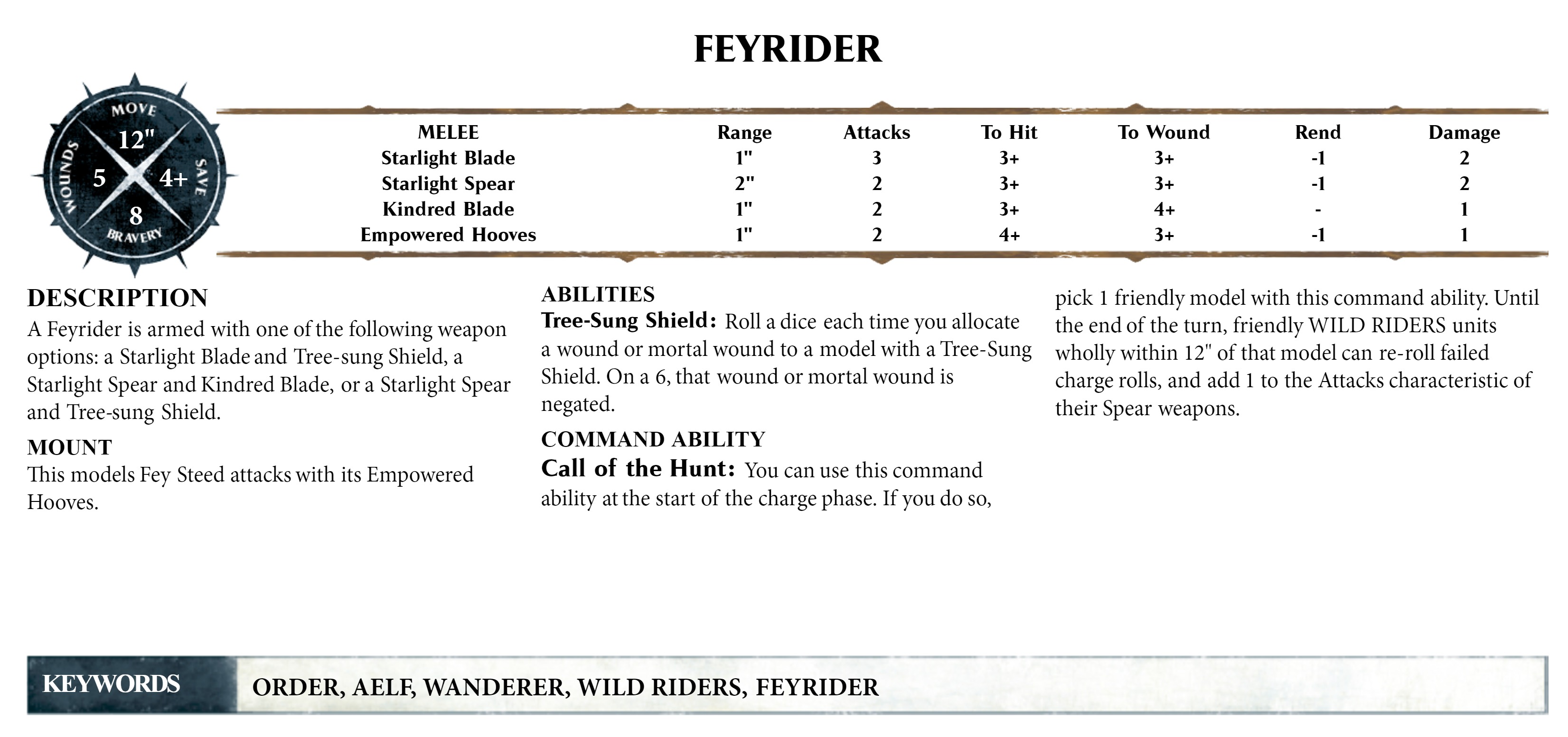 | Wild Riders | 5 | 20 | 130 | Battleline in Wanderers if your General is a Feyrider | |