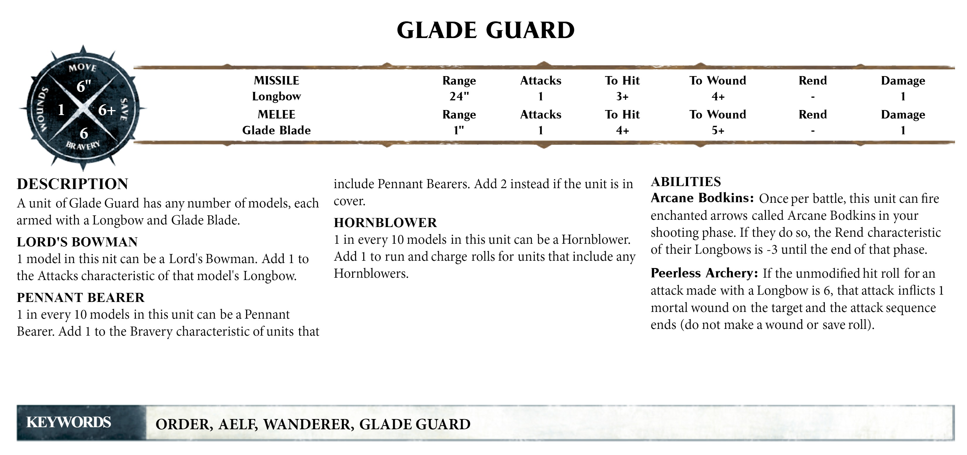 | Glade Guard | 8 | 32 | 100 | Battleline | |