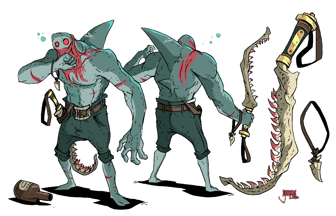 Blood Vison. The very scent of blood is enough to arouse a deep-rooted rage within Sharkula. If a creature within 100 feet has a wound that is bleeding and has less than half of their maximum health points, Sharkula enters a type of rage. Sharkula does an attack action to make a melee weapon, Sharkula may make an additional Vampiric Jaw attack as a bonus action feature to the attack. Sharkula may only do this a number of times equal to your Constitution modifier until making a long rest.