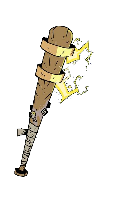 This bat was once an average bat favoured and used by Murray the Eel; after long time use, the bat seems to have been augmented with the powers of lightning. There is a secret button on the bottom of the handle. If pressed, discharge happens. If you use discharge this weapon loses its lightning augmentation and becomes a normal bat until the weapon is hit with lightning type damage to jump-start it.