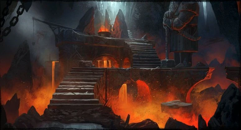 A forge without equal and lost to time, there is no soul alive or dead that knows who created such a place. Wherever this complex is, only Moradin knows. Inside there's tale that any tool a crafter would need exists within its bowels. Its beating heart is fueled by an enslaved volcano and tireless elementals are at a crafter's beck and call.
