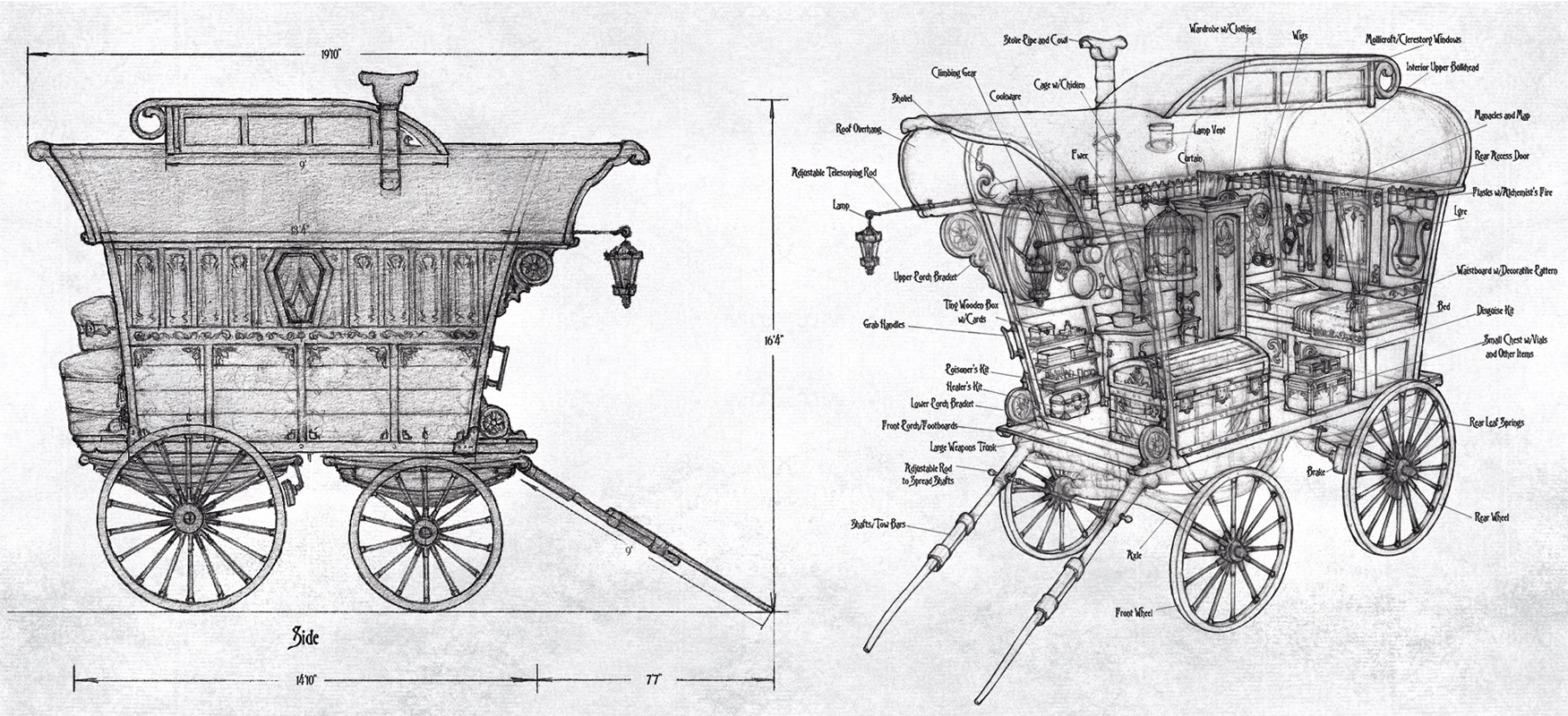 The wagon has a hidden trapdoor in its underbelly. The trapdoor opens into the wagon and is the only safe way inside.